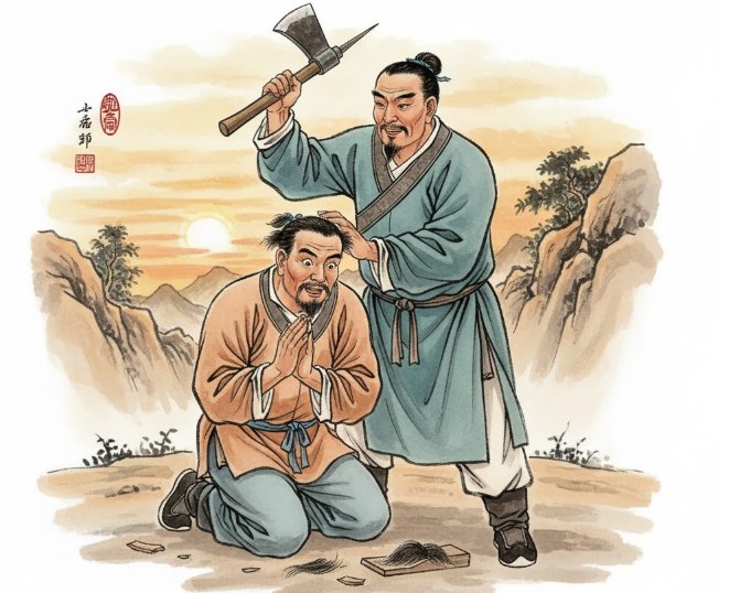 魏王正要下令斩首,庞涓”扑通”一声跪下了:”大王息怒!看在我的面子上,饶他一命吧!”