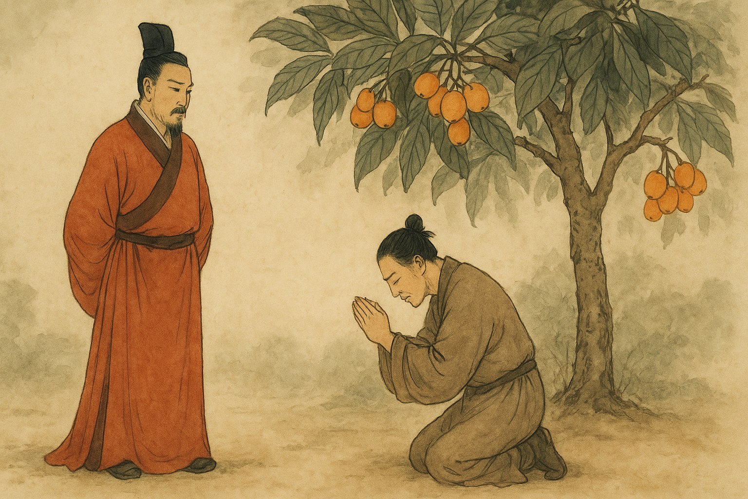 周围的人都屏住呼吸,看着跪在地上的同伴。那佣人知道再辩解也没用了,只得磕头认罪:”丞相明鉴,小人一时嘴馋,昨天趁着给树浇水,偷摘了两个果子吃了。小人知错了,求丞相开恩!”