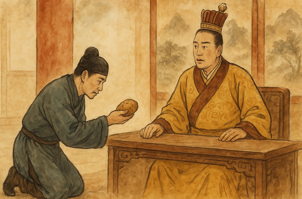 李世民这才回过味来,原来魏征啃窝窝头是在向他借粮呢!他心里虽然有点不乐意,可自古君无戏言,话都说出口了,也只能认了。他伸手把魏征扶起来,当场挥笔写下手谕:”拨粮万担。”