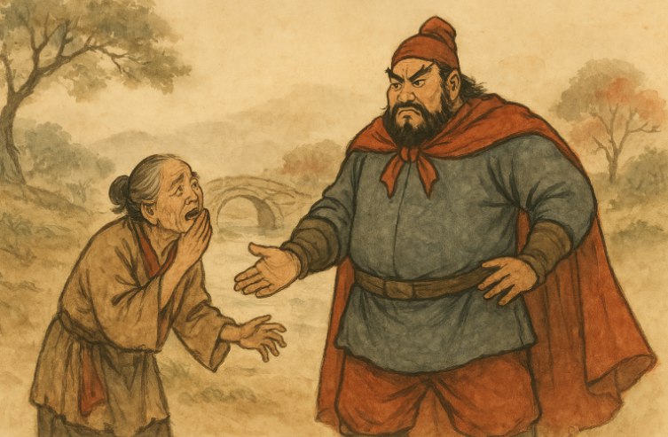 别看程咬金是个草寇,心里头可装着老百姓。这天,他带着几个弟兄下山查访民情,刚走到桥头,就看见一个老太太抹着眼泪直嚷嚷:”程大王在哪儿?我要告状!”